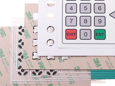 Die Folientastatur wird als mehrschichtig verklebter Folienschichtaufbau gefertigt. Als Schaltfolien kommen silberleitlackbedruckte Polyesterfolien zum Einsatz. Die untere und obere Schaltfolie wird durch eine Distanzfolie auf Abstand gehalten. Der Kontakt schliesst sich bei Druck auf die obere Designfolie im Bereich der Taste.