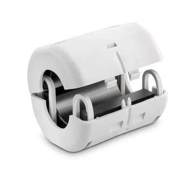 mit SicherheitsverschlussMit innovativem Rasterverschluss wird ein höherer Anpressdruck auf die Ferrithälften erreicht, dadurch verbessern sich die Dämpfungseigenschaften. Das Kunststoffgehäuse schützt die Ferrithalbschalen gegen Bruch, somit jederzeit ausserhalb eines Gerätes einsetzbar. Einfache Montage an bereits installierten oder mit Stecker versehenen Kabeln.