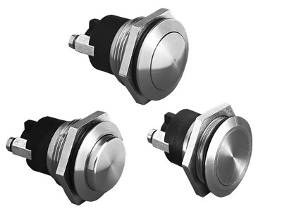 21,5mm, flach, 1A, 50V AC/DC, IP68Edelstahltaster mit flachem, gewölbtem oder hervorstehendem Betätiger.